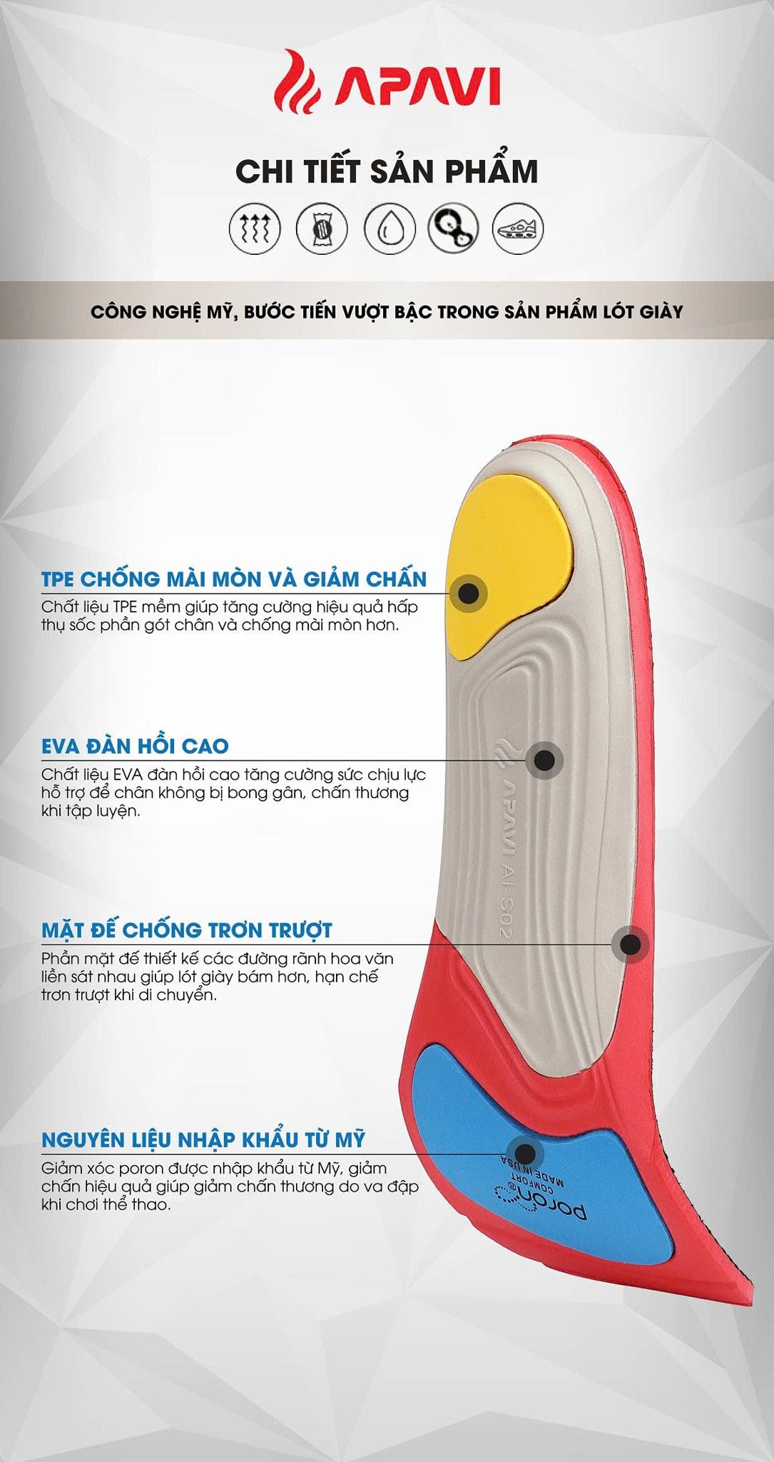 | Tên sản phẩm | Lót giày thể thao APAVI AI-S02 |