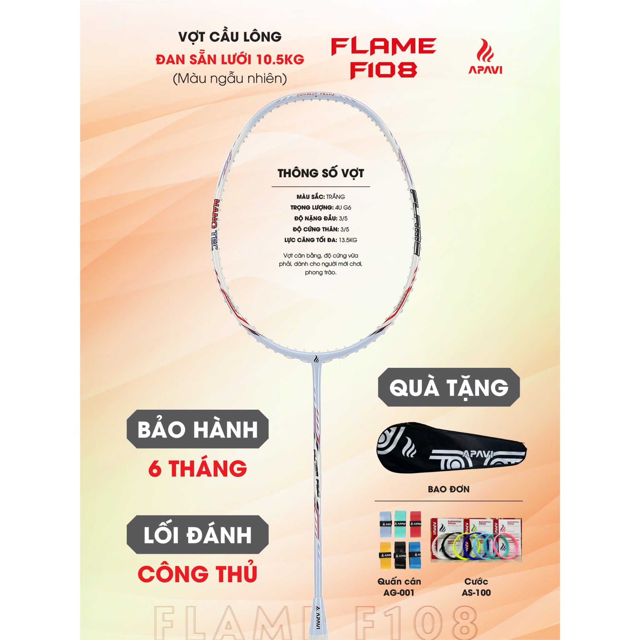 Vợt cầu lông Apavi Flame F108 – Nhẹ, Dễ Chơi, Công Thủ Toàn Diện