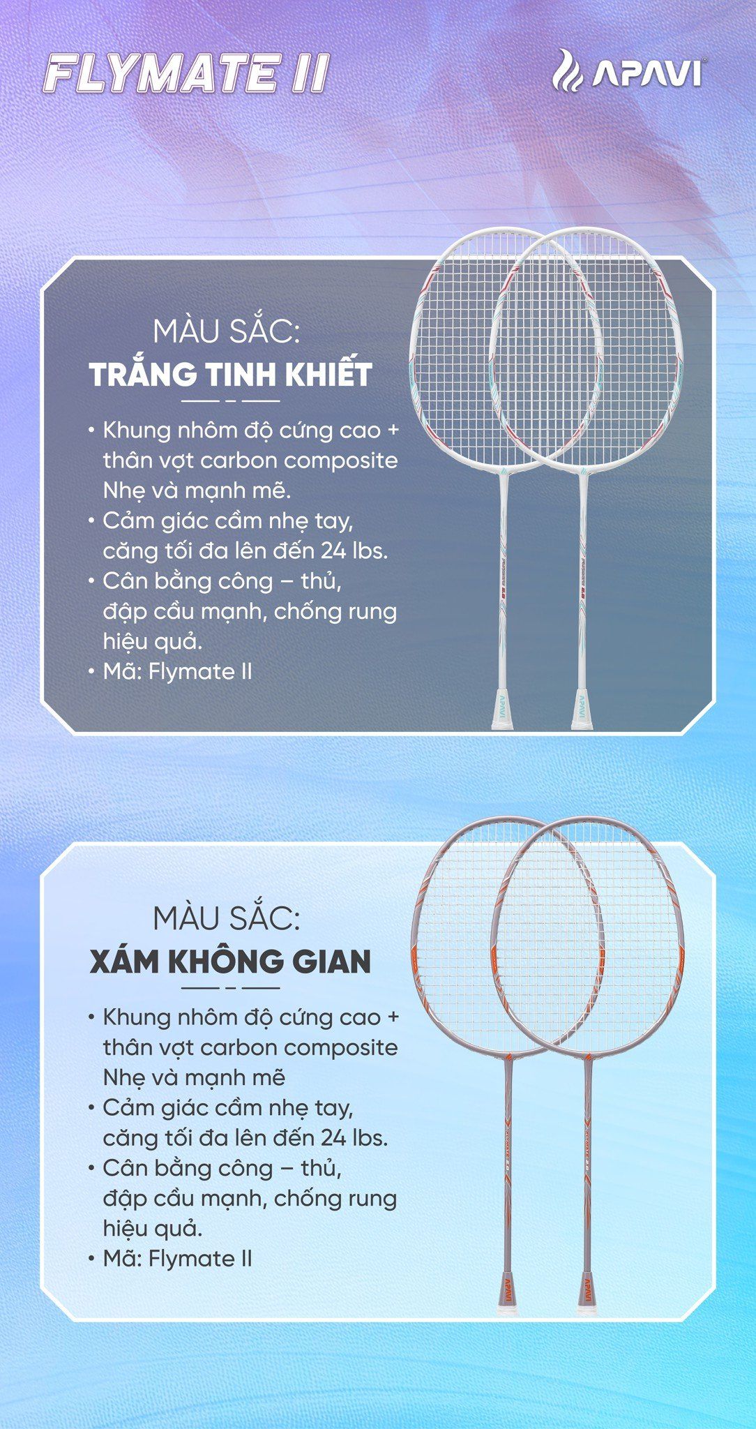 Flymate II – dòng vợt cầu lông 2 cây dành cho người mới chơi, được thiết kế đặc biệt để giúp bạn làm quen nhanh, chơi dễ dàng và tận hưởng niềm vui thể thao mỗi ngày.