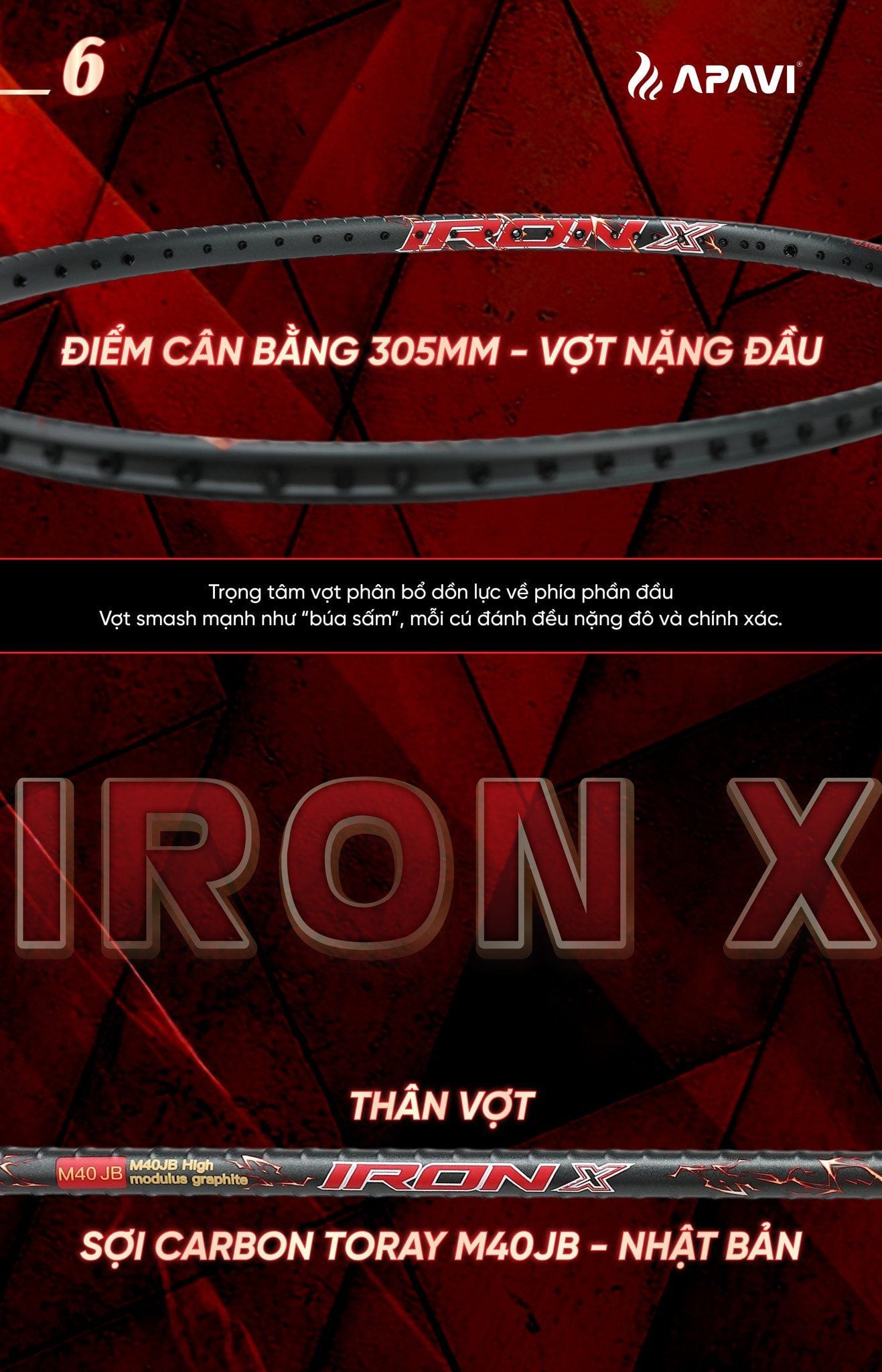 Vợt Cầu Lông APAVI IRON X – Mạnh Mẽ, Ổn Định, Smash Cực Đã