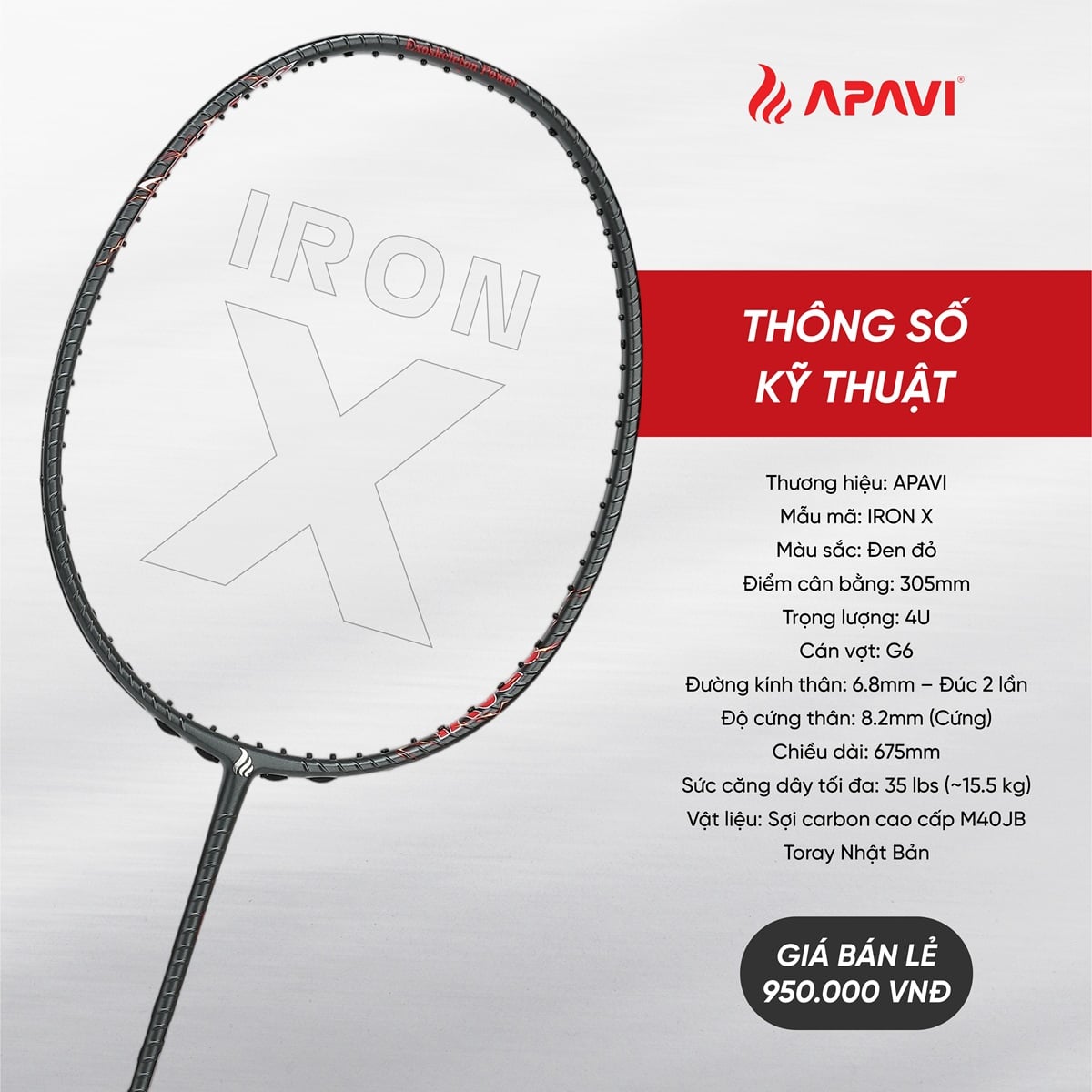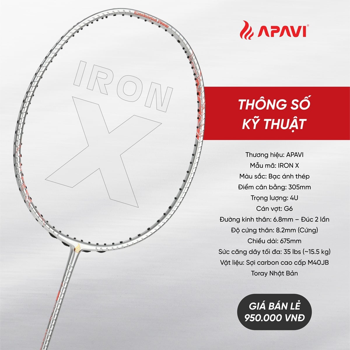 APAVI IRON X – Chắc như thép, smash như bão. Cây vợt tấn công đáng mua nhất trong phân khúc giá dưới 1 triệu đồng.