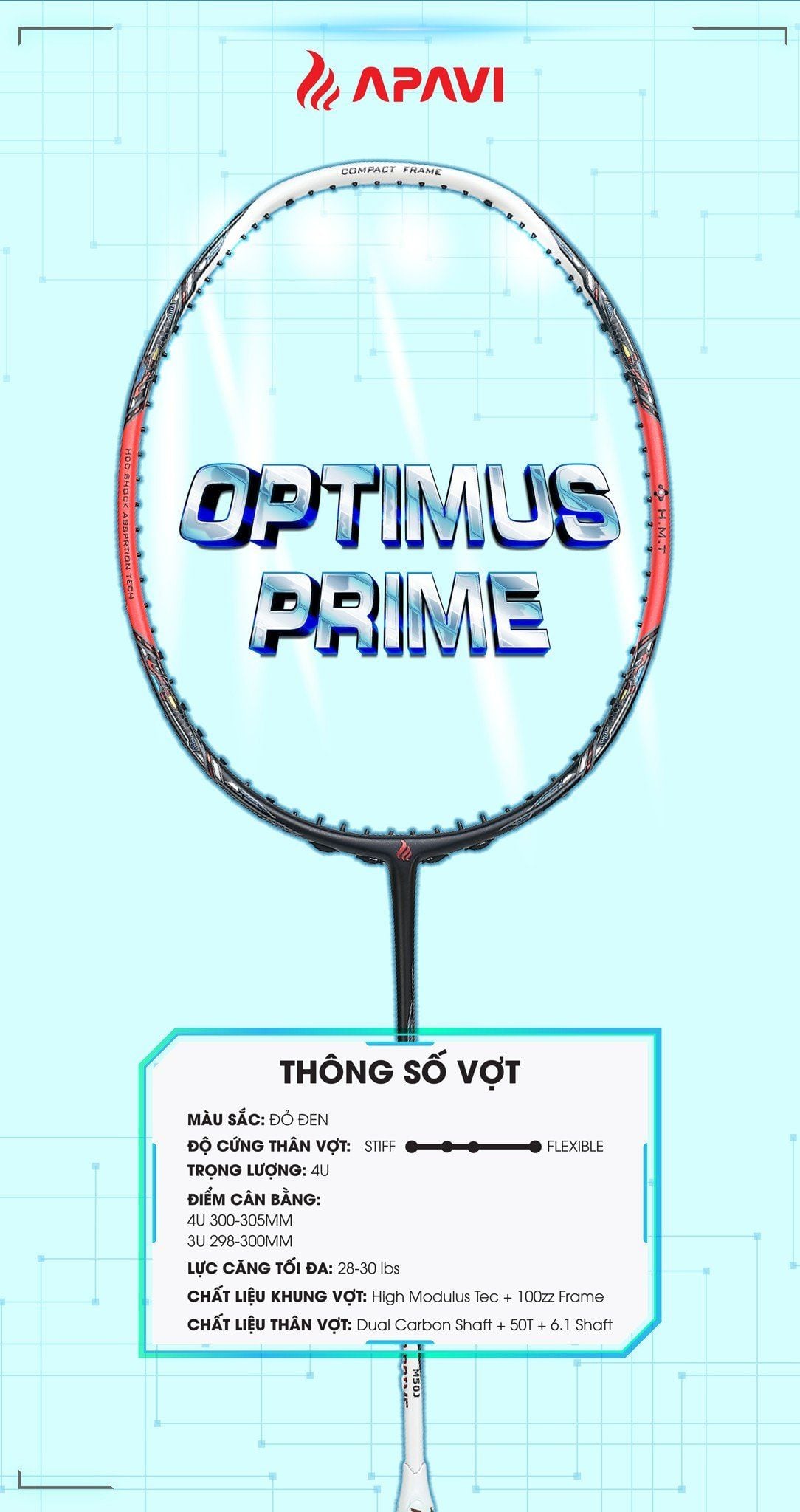 Apavi Optimus Prime là cây vợt mạnh mẽ dành cho những chiến binh sân đấu, giúp bạn smash uy lực, kiểm soát đường cầu chính xác và làm chủ thế trận.