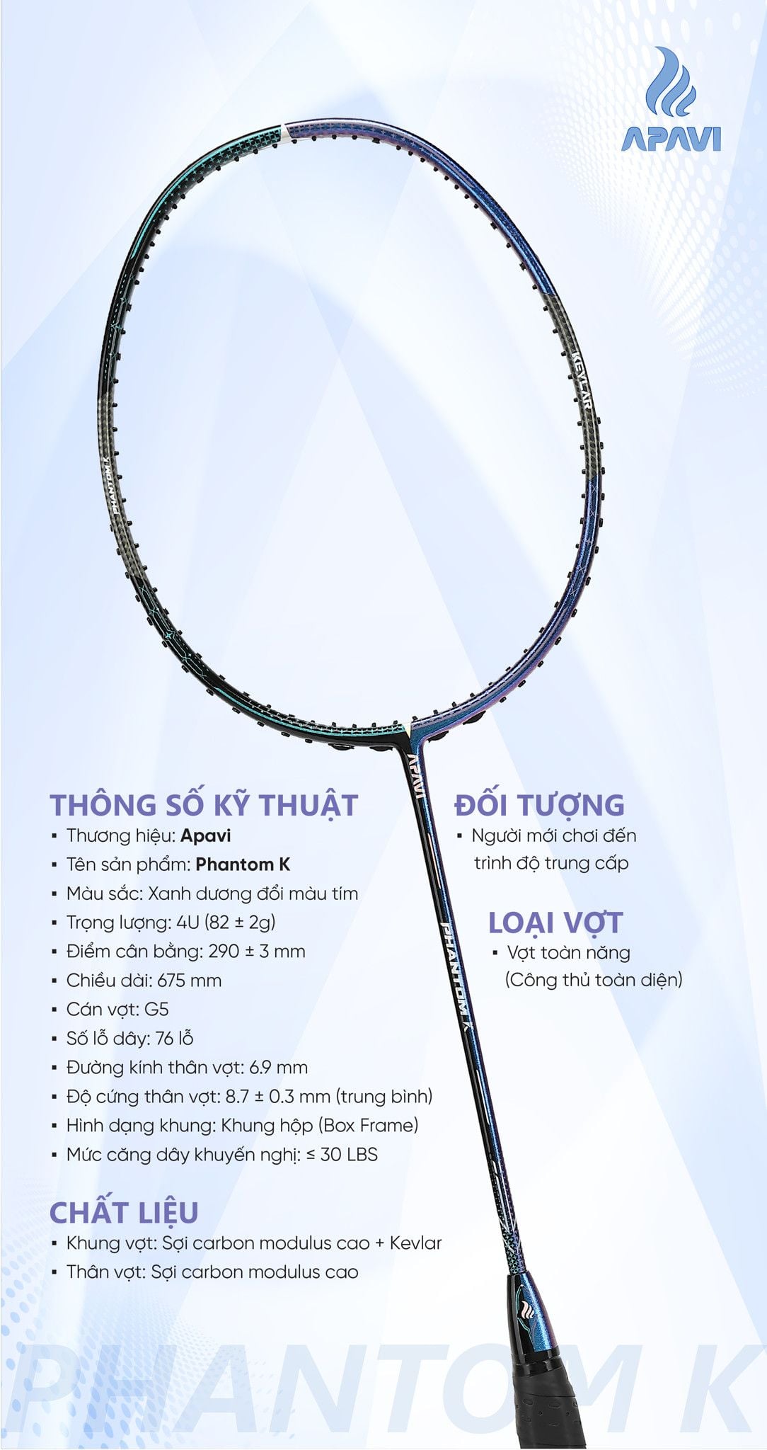 Thông số kỹ thuật vợt cầu lông Phantom K