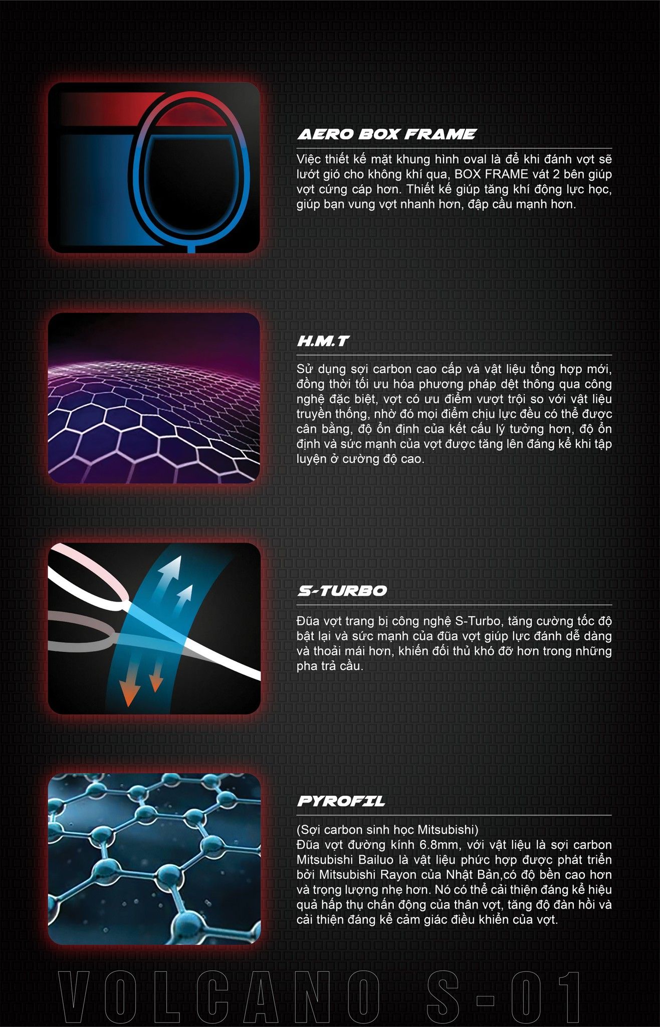 Công nghệ nổi bật trên vợt Apavi Volcano S-01