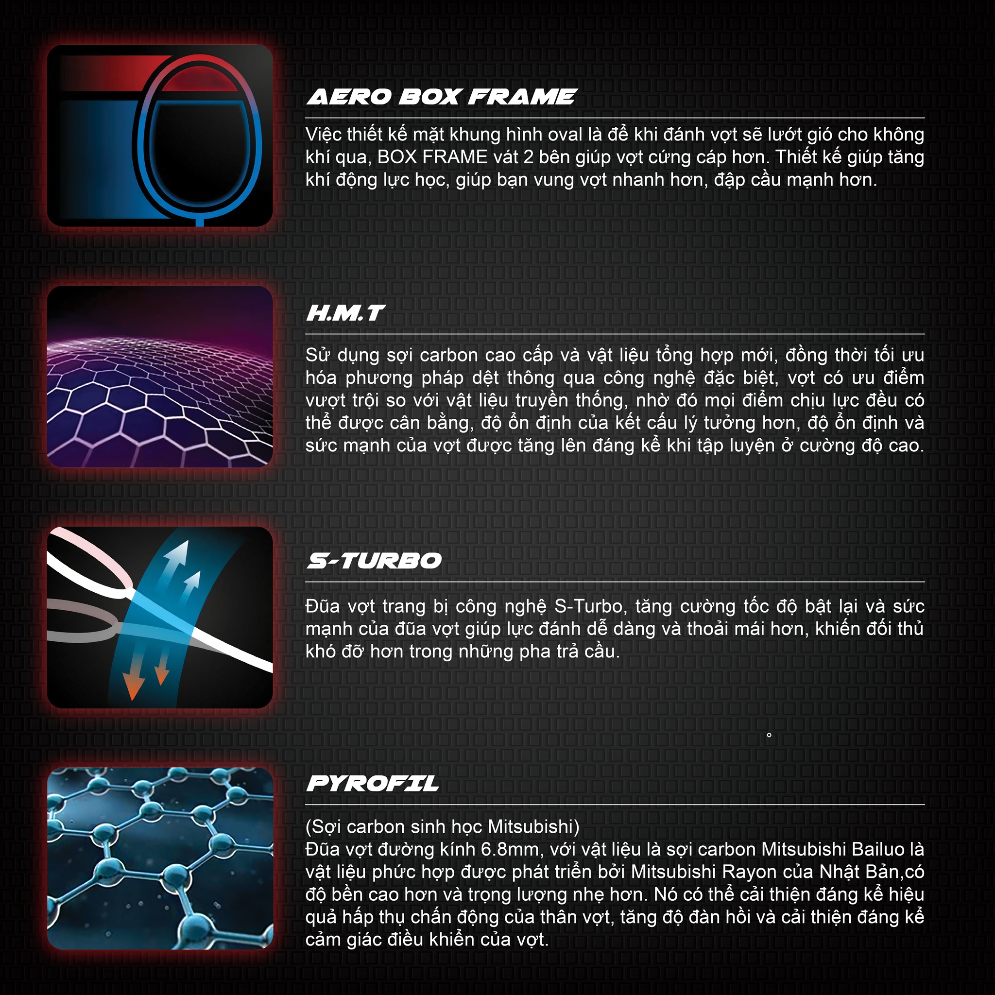 - Khung vợt: Aero Box Frame – S-Turbo Shaft
