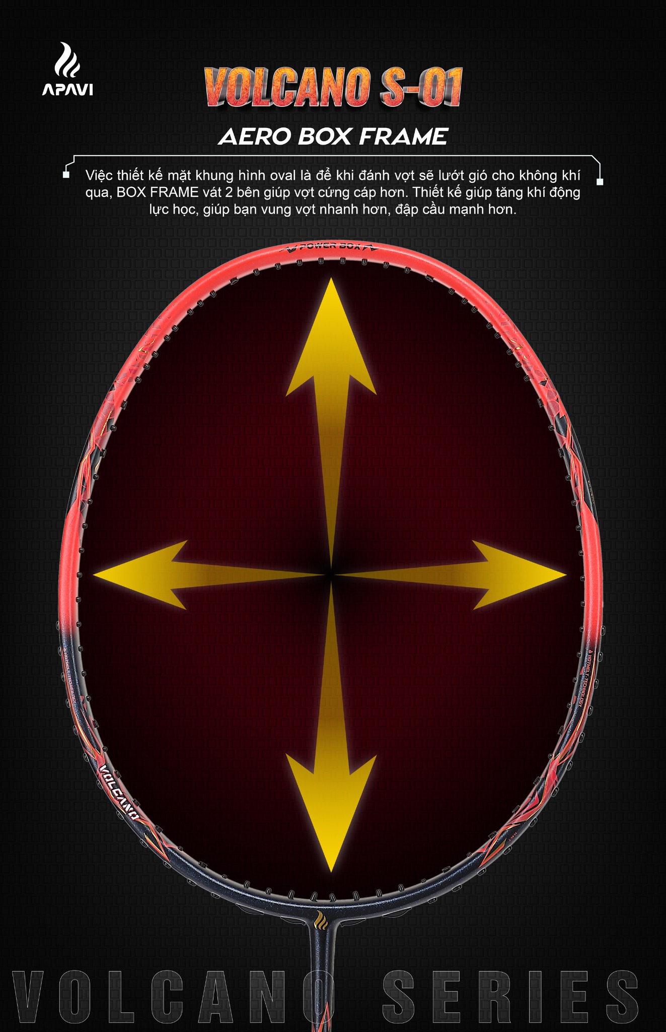 Lấy cảm hứng từ sự phun trào mạnh mẽ của núi lửa, Apavi Volcano S-01 được thiết kế để tạo áp lực tối đa lên đối thủ, giúp bạn thực hiện những cú đập cầu tốc độ cao, sâu và chính xác. Với khung vợt Aero Box Frame giúp giảm lực cản không khí, cùng công nghệ Pyrofil Carbon giúp giảm rung chấn, Volcano S-01 mang lại cảm giác cứng chắc, hỗ trợ lực tay cực tốt, giúp bạn thống trị mọi trận đấu bằng sức mạnh áp đảo.