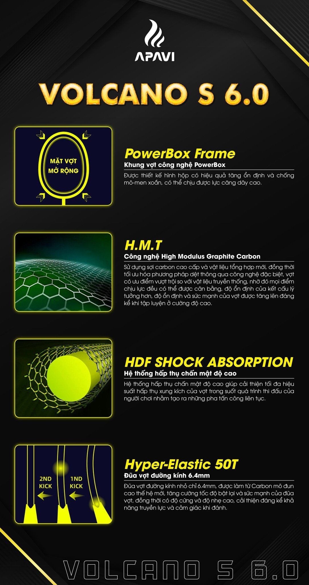 Công nghệ nổi bật trên vợt Apavi Volcano S 6.0