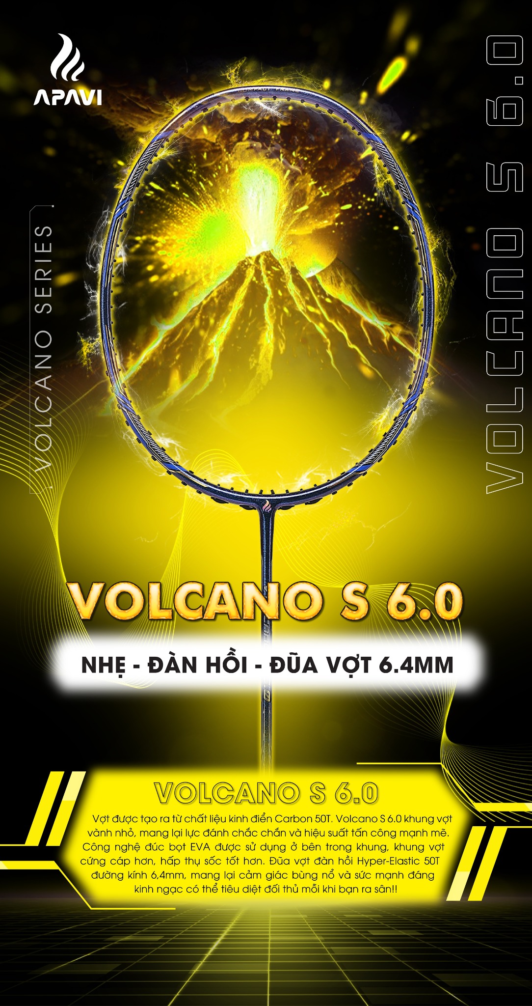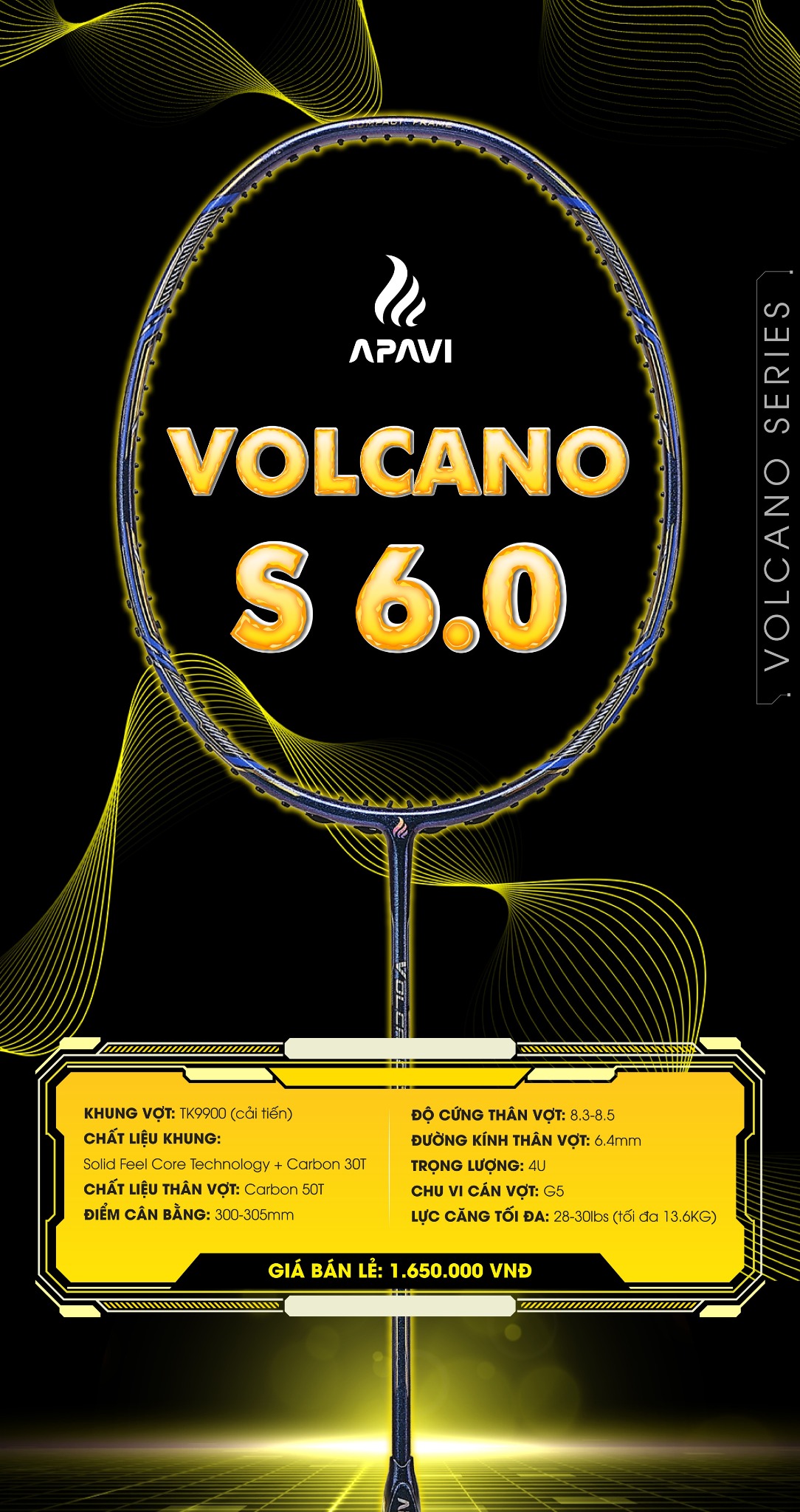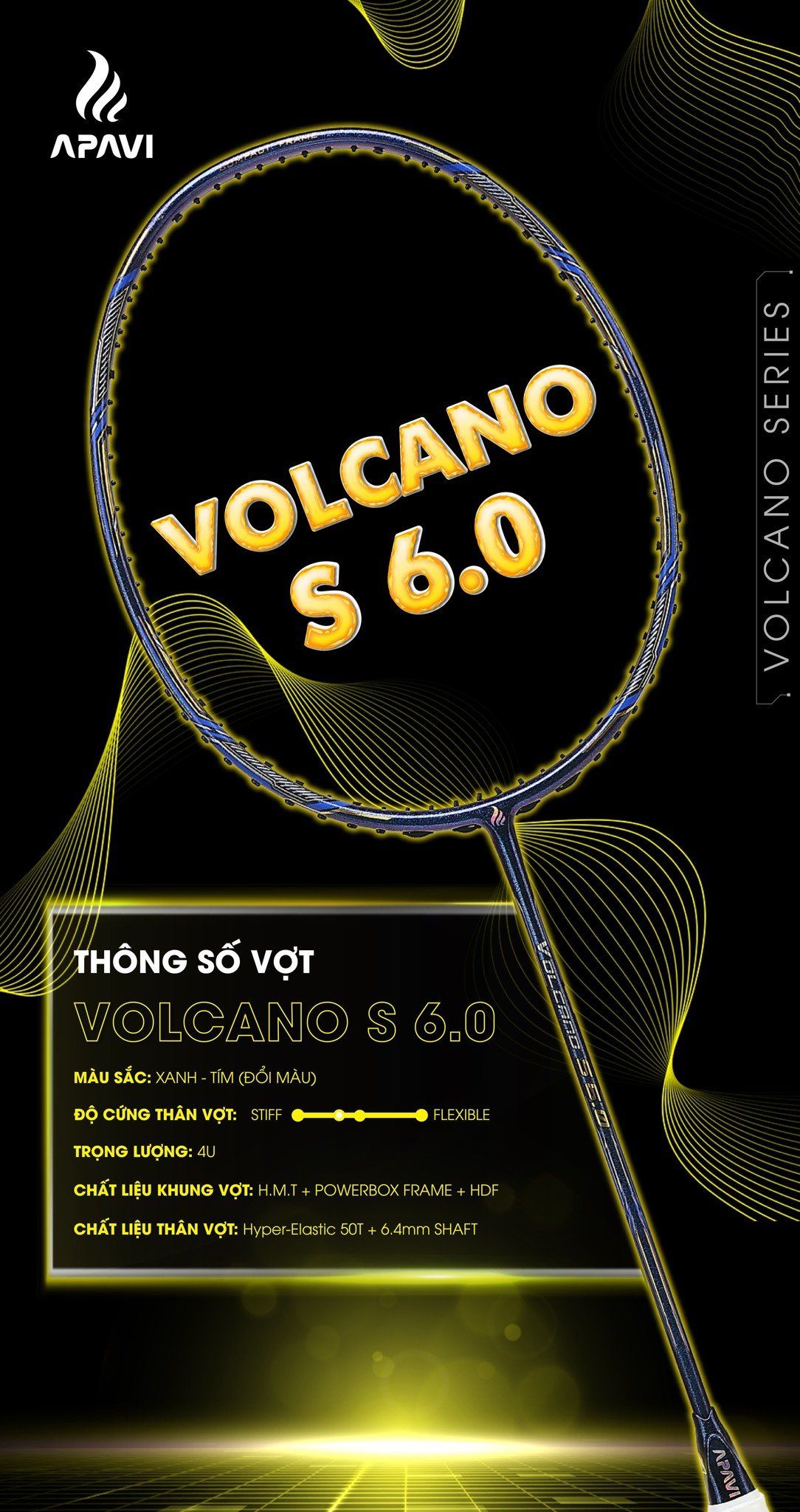 Apavi Volcano S 6.0 là cây vợt lý tưởng cho người chơi có lối đánh tấn công, với thiết kế giúp hỗ trợ smash uy lực, ép đối thủ vào thế phòng thủ.